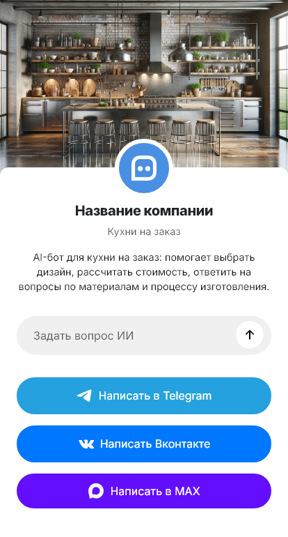 Внедрение настраивается под конкретную компанию: бренды материалов и фурнитуры, варианты столешниц, сроки производства, процесс проектирования, условия оплаты, доставка и монтаж, гарантийное обслуживание. Поэтому бот ведёт клиента по реальному маршруту и снижает риск недопонимания, когда ожидания по цене и срокам расходятся.