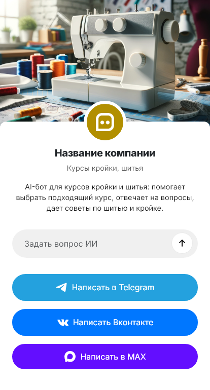 Бот для курсов шитья помогает быстро подобрать программу. Он уточняет опыт (с нуля/есть база), цель (научиться шить, сделать первую вещь, освоить конструирование, поднять уровень), интерес (одежда, бельё, аксессуары), формат (группа/индивидуально), удобные даты и время. Бот может предложить пробное занятие, показать программу по модулям и выдать чек-лист подготовки: какие инструменты понадобятся и что входит в стоимость.