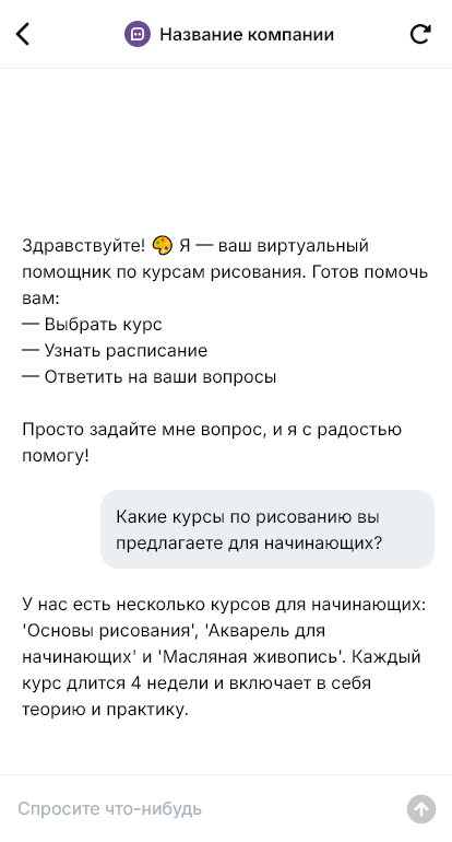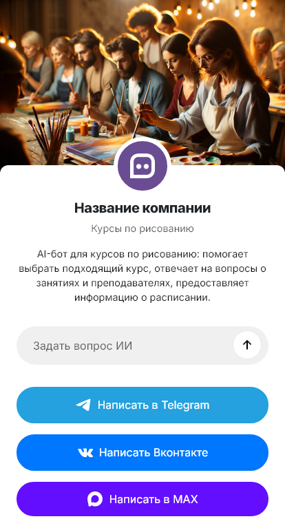 Курсы рисования выбирают увереннее, когда бот уточняет цель и помогает подобрать технику и уровень