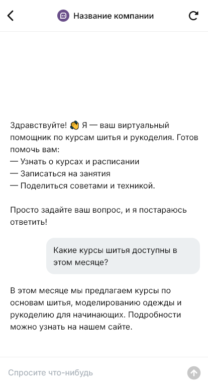 Внедрение настраивается под расписание школы: программы и уровни, длительность модулей, стоимость, условия оплаты, скидки, наличие мест, список материалов и инструментов, интеграция с CRM. Бот помогает быстро отвечать на типовые вопросы и не терять потенциальных учеников, которые пишут вечером или в выходные.
