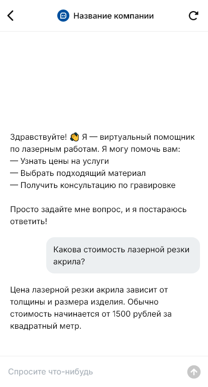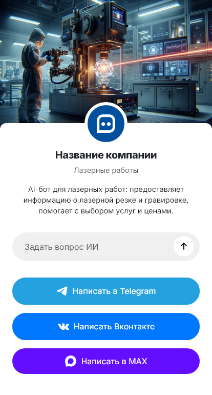 В итоге лазерные работы продаются быстрее и выполняются предсказуемее, снижается количество пересогласований, а клиент получает удобный канал, где можно загрузить файлы, получить расчет и сопровождать заказ через бота.