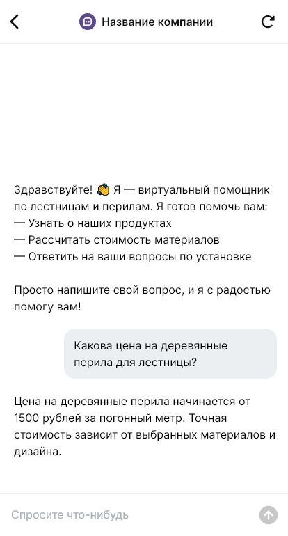 Решение внедряется под специфику бизнеса: ваши типовые конструкции, материалы (нержавейка, дерево, стекло), варианты комплектаций, условия доставки и монтажа, гарантии и вопросы безопасности. Это позволяет сделать общение предсказуемым, снять часть рутины с менеджеров и повысить конверсию заявок из рекламы и сайта.