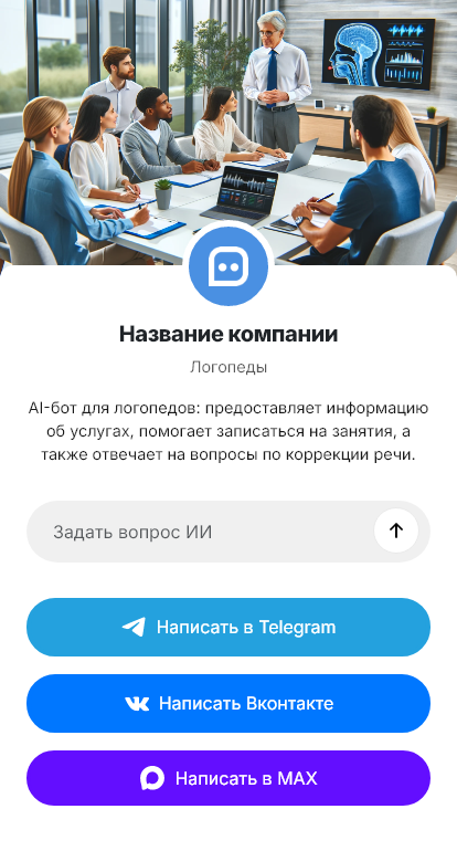 В итоге логопед получает больше подтверждённых записей и меньше потерь на этапе первичного контакта. Бот работает в Telegram, VK, MAX и на сайте, превращая вопросы родителей в удобную запись и посещение.