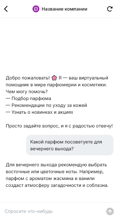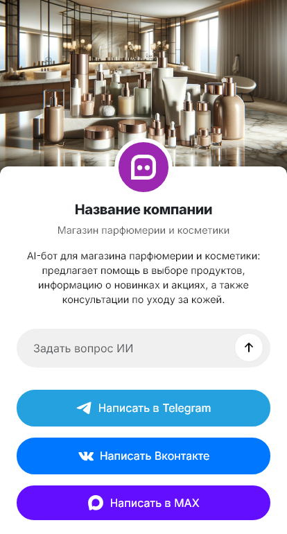 Парфюмерию и косметику часто выбирают через консультацию: ноты, стойкость, тип кожи, оттенки, уходовые задачи, подарки. Клиенты задают много вопросов и ждут быстрый ответ. Бот для магазина парфюмерии и косметики помогает автоматизировать первичный подбор и доводить диалог до покупки.