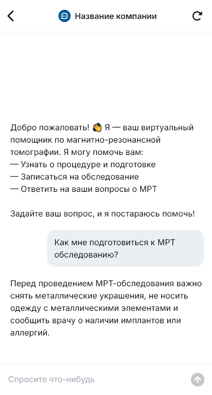 Магнитно‑резонансная томография требует чёткой организации: подобрать время, уточнить вид исследования и подготовку, предупредить о правилах посещения и документах. Пациенты пишут в мессенджеры, чтобы быстро узнать свободные окна, стоимость и как подготовиться. Если ответы приходят медленно, человек начинает искать другой центр. А при ручной обработке заявок повышается риск ошибок в параметрах записи и времени визита.