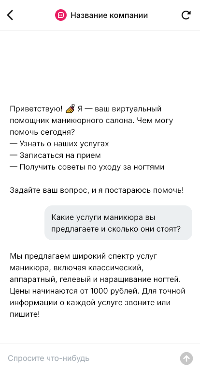 Маникюрные салоны ежедневно получают десятки обращений: «Есть окошко на сегодня?», «Сколько стоит покрытие?», «Можно ли с дизайном?». Когда администратор занят клиентами или отвечает сразу в нескольких чатах, часть сообщений остаётся без ответа — и записи уходят к конкурентам. Бот для маникюрного салона автоматизирует первичное общение и помогает доводить диалог до записи без роста нагрузки на команду.
