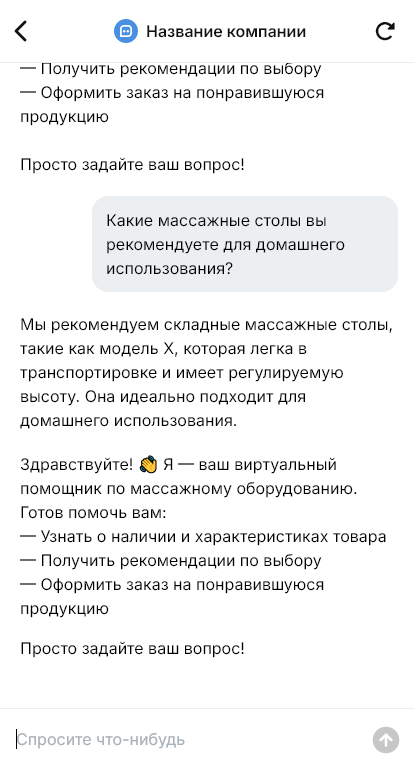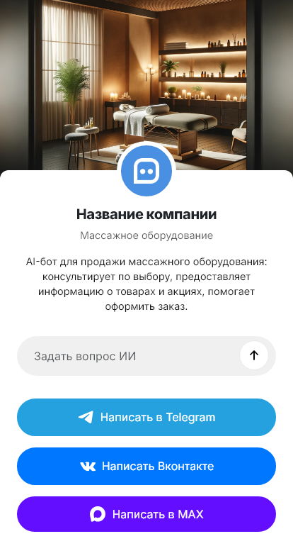 Массажное оборудование выбирают внимательно: клиенты спрашивают про характеристики, режимы, гарантию, доставку, подбор под задачи и бюджет. При большом потоке обращений сложно отвечать всем оперативно, и часть потенциальных сделок теряется. Бот для массажного оборудования помогает автоматизировать первичную консультацию и сбор заявок.