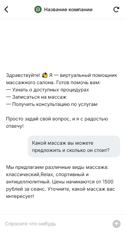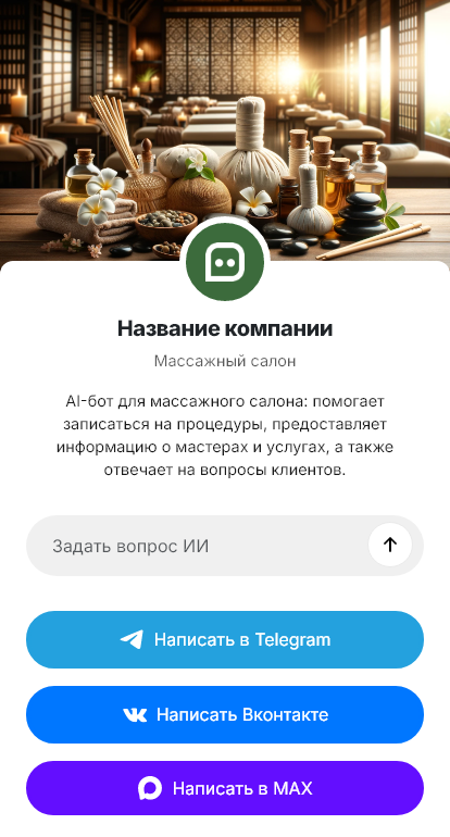Массажные салоны постоянно отвечают на однотипные сообщения: «Какие виды массажа есть?», «Сколько стоит сеанс?», «Есть свободное время?». При высокой загрузке администратору сложно реагировать мгновенно, и часть заявок теряется. Бот для массажного салона автоматизирует первичное общение и помогает быстрее доводить клиента до записи.