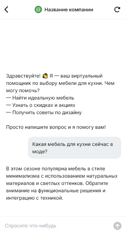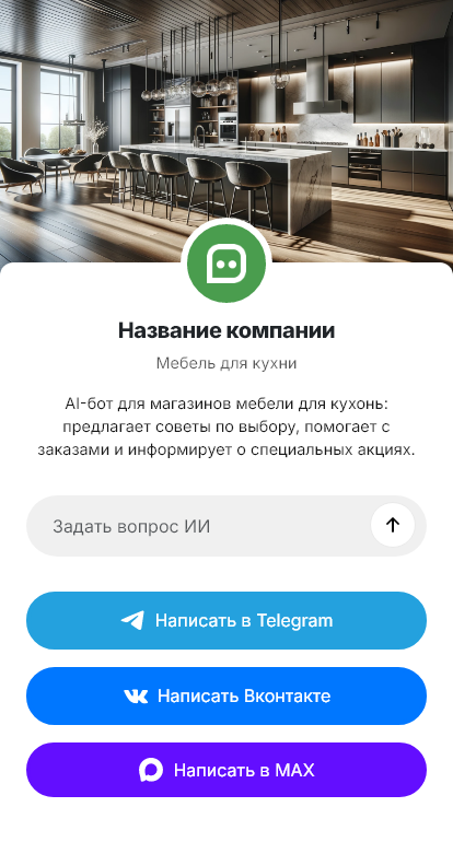Мебель для кухни часто начинается с консультации: размеры, планировка, материалы, фурнитура, сроки изготовления, замер и установка. Заявки приходят из разных каналов и требуют много уточнений. Бот для мебели для кухни помогает автоматизировать первичный сбор данных и фиксировать заявку на замер или проект.
