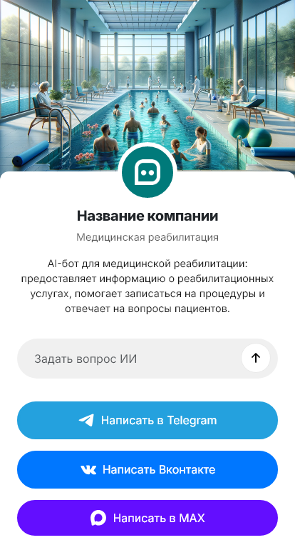 В итоге реабилитация становится доступнее для пациента, а центр получает больше подтверждённых обращений. Бот работает в Telegram, VK, MAX и на сайте, превращая вопросы о программе в запись на консультацию.