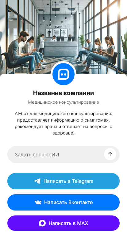 В итоге консультации оформляются быстрее, а конверсия обращений в визиты или созвоны становится выше. Бот работает в Telegram, VK, MAX и на сайте, превращая вопрос пациента в подтверждённую запись.