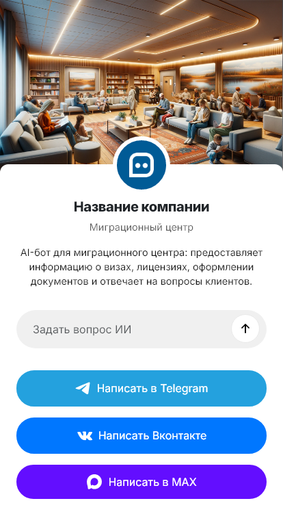 Внедрение настраивается под регламенты центра: перечень услуг, правила записи, требования к документам, допустимые форматы, срок обработки, интеграция с очередью или CRM. Бот помогает маршрутизировать обращения так, чтобы клиент попадал к нужному специалисту уже подготовленным.