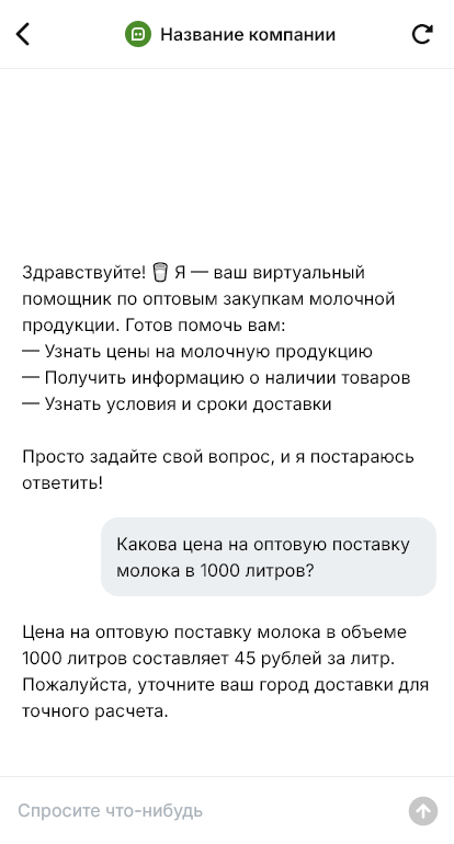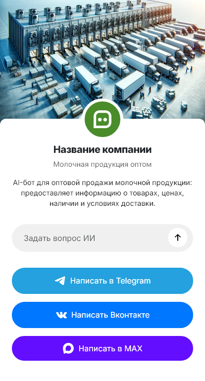 Оптовая молочная продукция требует скорости: наличие, цены, сроки годности, график отгрузок, документы и логистика. Если менеджер не отвечает быстро, клиент переключается на другого поставщика. Бот для молочной продукции оптом помогает автоматизировать первичный контакт и сбор заказа.