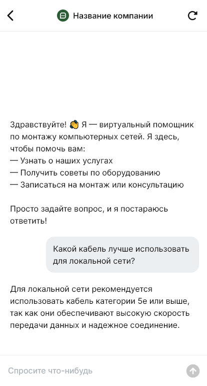 Монтаж компьютерных сетей продаётся проще когда бот собирает бриф и заранее уточняет все точки и оборудование