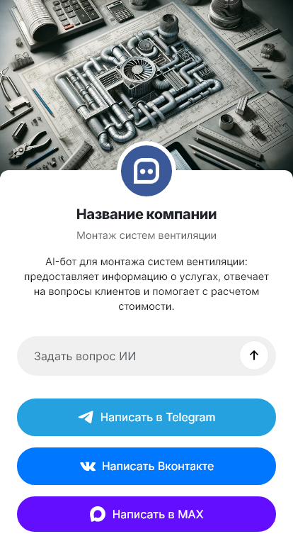Бот для монтажа вентиляции помогает превратить размытый запрос в структурированную заявку. Он уточняет тип объекта (квартира, дом, офис, кафе), площадь, количество помещений, высоту потолков, наличие приточно-вытяжной системы или необходимость проектирования с нуля, требования к скрытому монтажу и уровню шума. Бот может попросить план БТИ или схему помещения и сформировать заявку на расчёт или выезд инженера.
