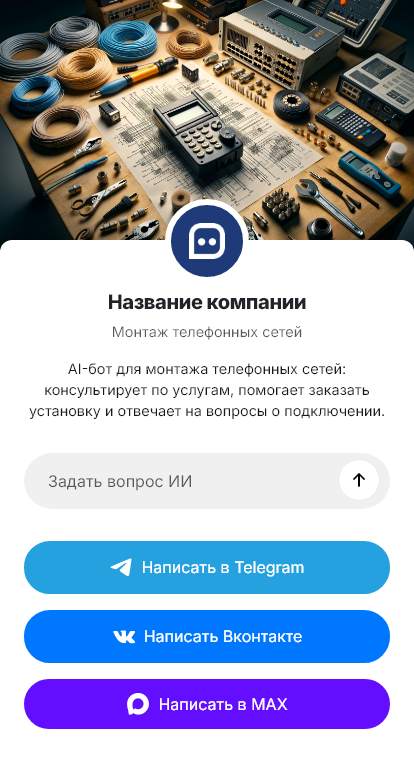 Бот для монтажа телефонных сетей помогает собрать вводные и подготовить заявку. Он уточняет тип объекта (офис, склад, бизнес-центр), количество точек, необходимость прокладки и коммутации, наличие серверной, требования к маркировке, доступность работ в выходные/ночью, сроки и бюджет. Бот может запросить план помещения или фото текущей разводки, чтобы инженер быстрее оценил объём.