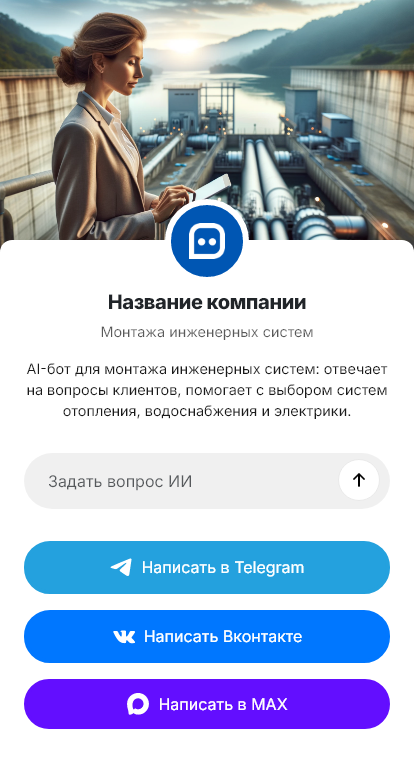 В итоге монтаж инженерных систем «под ключ» становится управляемым сервисом. Бот работает в Telegram, VK, MAX и на сайте, помогает быстрее собрать бриф, согласовать этапы, снизить число переносов и довести объект до запуска систем и передачи в эксплуатацию.