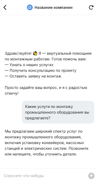 Монтажные работы — это широкий класс задач: от установки конструкций и оборудования до сборки узлов на объекте. Запросы бывают очень разными, и при ручной переписке легко упустить критичные детали: что именно монтировать, где объект, какие сроки, нужен ли выезд на осмотр, какие требования по допускам и безопасности. Бот для монтажных работ помогает квалифицировать обращение, собрать первичное ТЗ и довести клиента до расчёта и выезда.