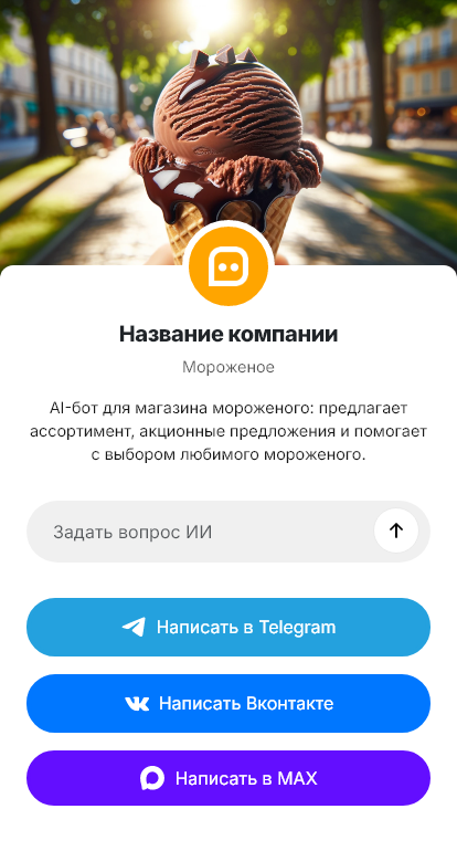 В итоге мороженое продаётся стабильнее, потому что путь от вопроса до заказа занимает минуты. Бот работает в Telegram, VK, MAX и на сайте, превращая интерес к вкусам в оформленные доставки.
