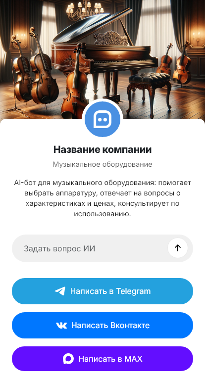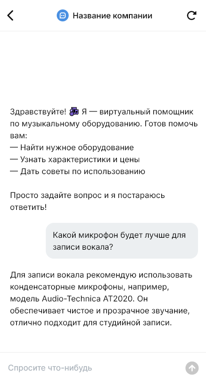 Музыкальное оборудование продаётся увереннее, когда бот уточняет задачу и собирает комплект под площадку