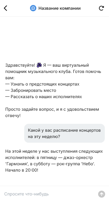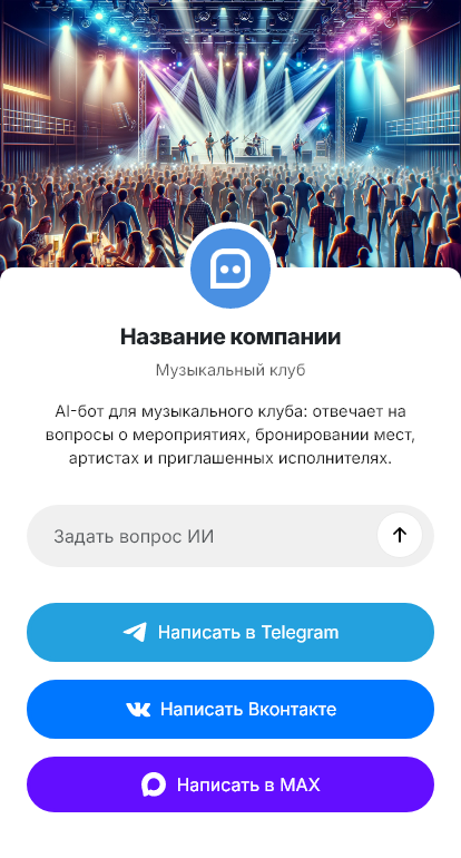 Музыкальные клубы ежедневно отвечают на вопросы о концертах и бронировании: «Какая афиша?», «Есть стол на вечер?», «Сколько стоит вход?». В пиковые часы сообщения часто остаются без ответа, и гости выбирают другое место. Бот для музыкального клуба помогает автоматизировать коммуникацию и сохранять каждый запрос.