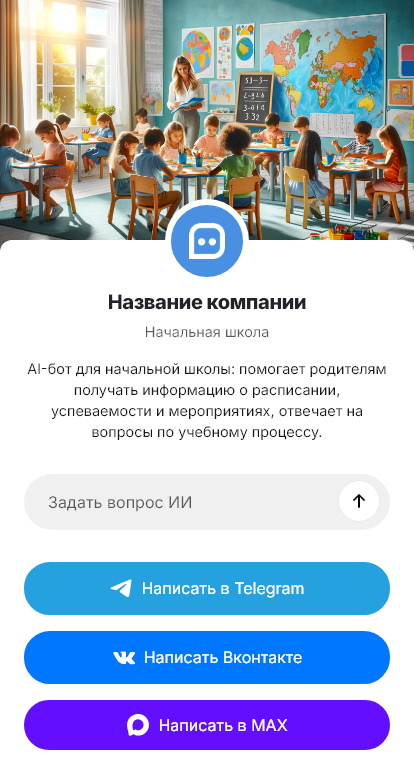 Решение внедряется под правила школы и работает в Telegram, VK, MAX и на сайте. Итог — быстрее ответы, меньше рутины и понятная коммуникация для родителей.