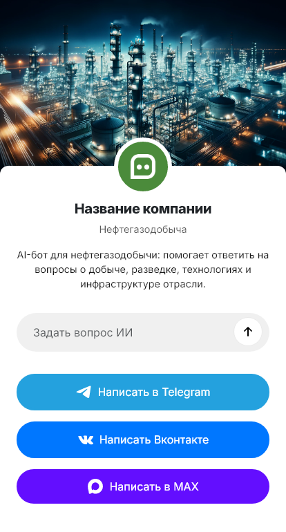 Бот для нефтегазодобывающей компании помогает создать единый входной канал и маршрутизировать запросы. Он предлагает выбрать тип обращения и затем собирает нужные данные: для ремонтов — объект, оборудование, симптомы, фото; для закупок — спецификацию и сроки; для подрядчиков — допуски и опыт; для HR — резюме. Заявки фиксируются и передаются ответственным подразделениям.