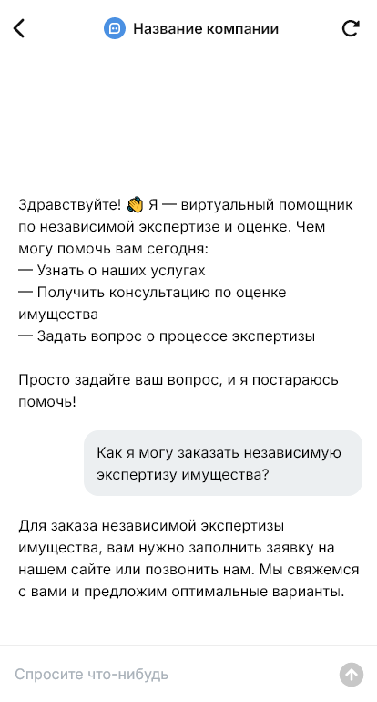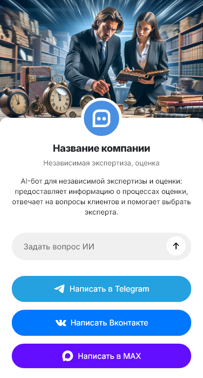 Внедрение настраивается под специализацию компании: автоэкспертиза, строительная, товарная, оценка ущерба, судебные заключения, порядок выезда, сроки подготовки отчёта, интеграция с CRM. Бот помогает объяснить этапы: сбор данных → осмотр → расчёты → заключение.