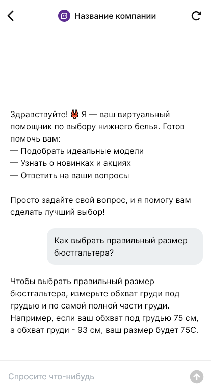 Нижнее бельё — категория, где клиент особенно ценит приватность, точность и внимательное сопровождение. Покупатели задают вопросы о посадке, поддержке, составе ткани, особенностях кроя, размере чашки, глубине посадки, корректирующем эффекте, а также о том, как правильно снять мерки. Многие стесняются долго переписываться и не любят «вытягивать информацию» из продавца. Если ответа нет в первые минуты, человек просто закрывает диалог и уходит выбирать в другой магазин.