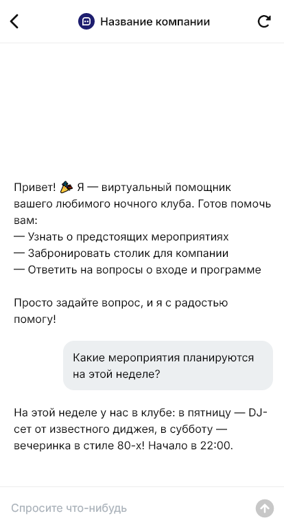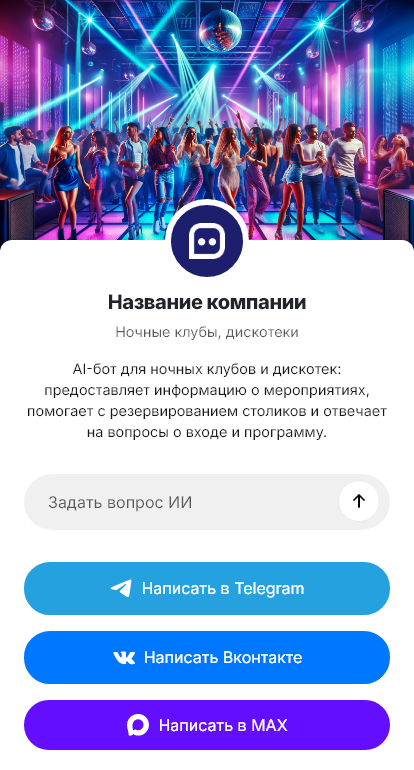 Ночные клубы и дискотеки живут пиковыми часами, когда поток вопросов в мессенджерах максимальный: вход, фейс-контроль, дресс-код, стоимость, депозит на стол, свободные места, время работы, VIP-зоны, мероприятия и афиша. Люди принимают решение быстро, часто уже собираясь, и если клуб не отвечает сразу, они выбирают другое место. В результате теряются продажи столов и билетов.
