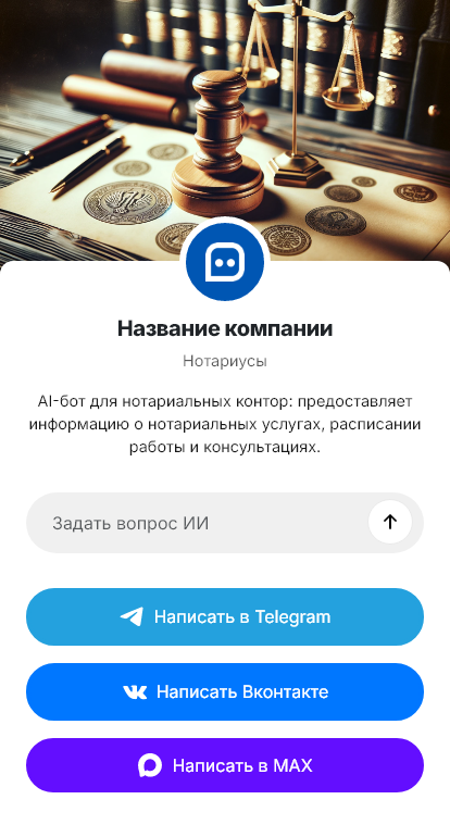 Бот для нотариуса помогает организовать первичный приём обращений и подготовку клиента. Он уточняет тип действия, цель, участников, регион и сроки, задаёт вопросы по ключевым данным (паспортные, реквизиты, сведения об объекте/организации), а затем выдаёт список необходимых документов и предлагает запись на удобное время. Бот может объяснить нюансы: когда нужна личная явка, когда возможна доверенность, как подготовить данные заранее.