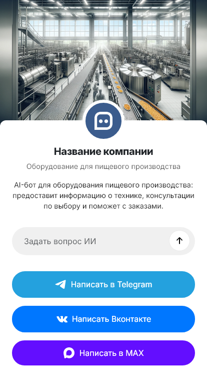 Бот помогает собрать техтребования и быстро подготовить запрос на подбор. Он уточняет тип продукта (мясо, молоко, кондитерка и т.д.), технологический процесс, требуемую производительность, условия помещения, питание и коммуникации, требования по санитарии и материалам, формат упаковки, интеграции и автоматизацию, сроки и бюджет. Бот может запросить техзадание, план цеха или спецификацию, чтобы инженер предложил решение без долгих уточнений.