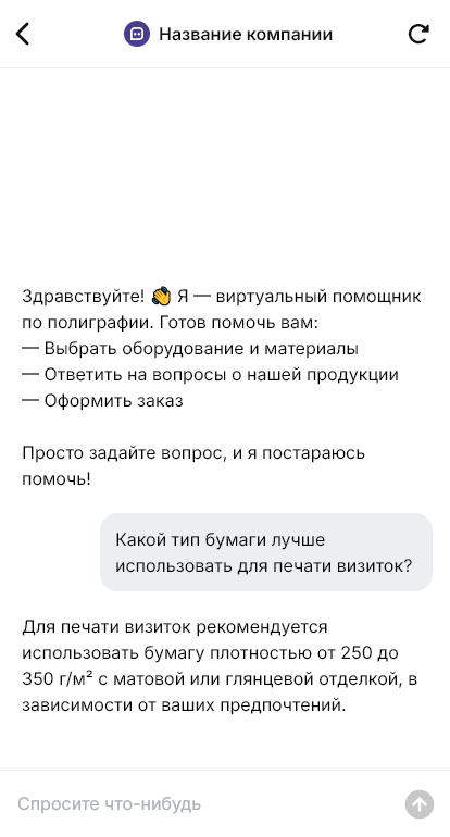 Полиграфические материалы и оборудование продаются лучше, когда бот быстро уточняет задачу типографии