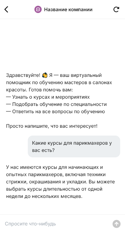Обучение мастеров салона продаётся лучше, когда бот подбирает программу под специализацию и расписание
