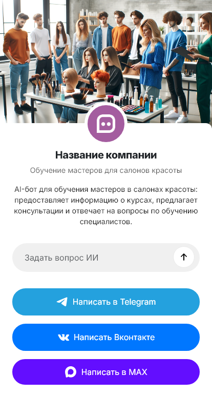 Бот для обучающего центра помогает определить потребность и подобрать курс. Он уточняет специализацию, текущий уровень, цели (новая услуга, повышение среднего чека, исправление техники), предпочтительный формат (интенсив, модуль, индивидуально), удобные даты и время, а также бюджет. Бот может рассказать о преподавателях, количестве практики, материалах, сертификатах и показать примеры работ выпускников.