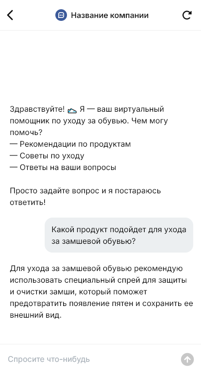 В итоге обувная косметика продаётся стабильнее, уменьшается количество ошибочных покупок, а клиент получает видимый результат и доверие к бренду благодаря боту, который подбирает уход под конкретный материал.