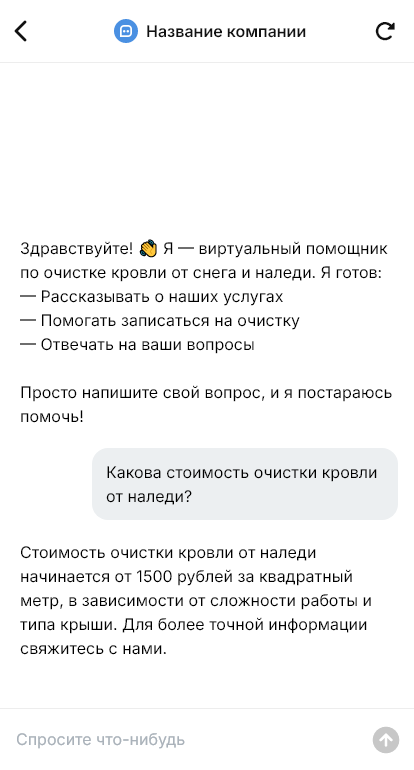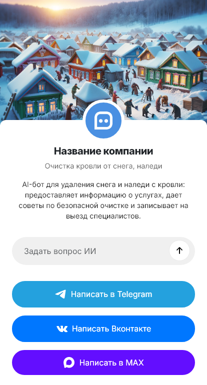 В итоге очистка кровли становится более оперативной и безопасной. Бот работает в Telegram, VK, MAX и на сайте, помогает фиксировать срочность, собирать данные для выезда, снижать риски и доводить заявку до результата с прозрачной коммуникацией.
