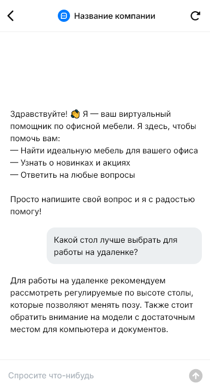 Офисная мебель продаётся быстрее, когда бот сразу понимает задачу бизнеса