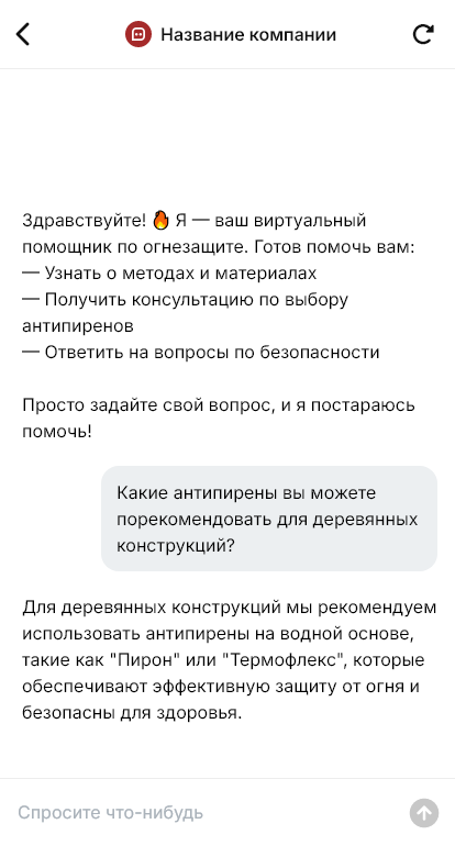 В итоге огнезащита внедряется быстрее и спокойнее, уменьшается риск сорвать сроки сдачи объекта, а заказчик получает понятный путь от заявки до актов и подтверждающих документов через удобный диалог с ботом.