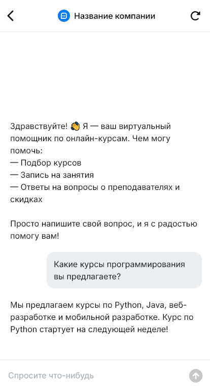 Онлайн‑курсы получают поток вопросов: какой курс выбрать, сколько длится обучение, есть ли сертификат, поддержка, рассрочка, когда старт. Если пользователь не получает ответ сразу, он уходит на другую платформу. Бот для онлайн‑курсов автоматизирует первичную консультацию и помогает доводить интерес до регистрации.