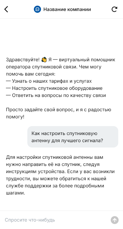 Спутниковая связь подключается проще когда бот объясняет условия и собирает вводные по объекту