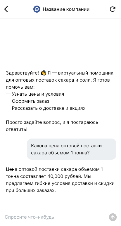 Оптовые поставки сахара и соли требуют точных вводных. Покупатели уточняют объём, фасовку, вид сахара, тип соли, документы, условия оплаты, место отгрузки, транспорт и окна приёмки. Если данные приходят в свободной форме, менеджеру приходится долго уточнять детали, а расчёт цены и логистики затягивается. В конкурентной нише это означает потерю сделки, потому что клиент выбирает того, кто быстрее выдаёт понятные условия.