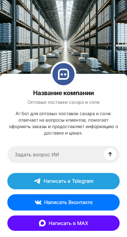 В итоге оптовые поставки становятся более управляемыми и предсказуемыми. Бот работает в Telegram, VK, MAX и на сайте, превращая разрозненные запросы в точные заявки и быстрые сделки.
