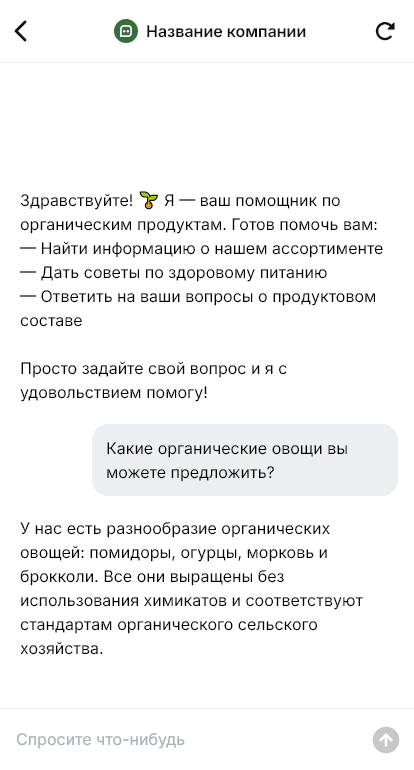 Органические продукты покупают люди, которым важно читать состав и доверять происхождению. Они спрашивают о сертификатах, ингредиентах, аллергенах, отсутствии сахара, глютена или лактозы, а также о подходящих вариантах для конкретной диеты. При ручных консультациях менеджер тратит много времени на повторяющиеся вопросы, а клиенту сложно быстро собрать корзину из разных категорий. Если ответы приходят медленно, покупка откладывается или уходит на маркетплейс.