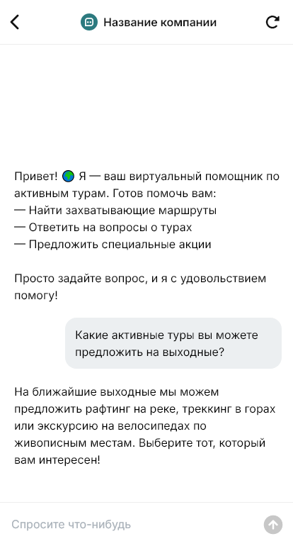 Внедрение настраивается под бизнес: календарь туров, правила предоплаты и возврата, шаблоны договоров, интеграция с CRM и оплатой. Бот может вести участников до поездки и после — собирать отзывы, предлагать новые маршруты по интересам, формируя повторные продажи.
