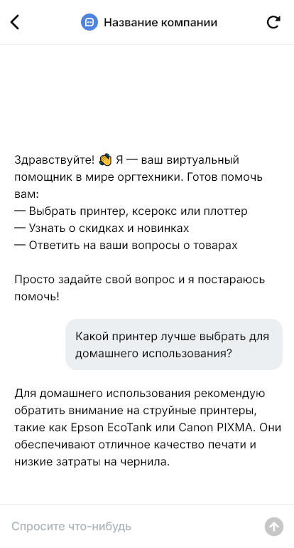 Для корпоративных клиентов бот может собирать реквизиты и условия поставки, чтобы ускорить оформление. А для сервисных вопросов — принимать обращения на уровне организационной информации и передавать их в поддержку.
