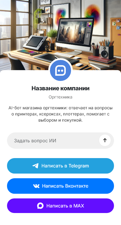 Оргтехнику выбирают по задачам: печать, сканирование, МФУ, скорость, формат бумаги, ресурс, сетевые функции и расходники. Клиенты задают много вопросов о моделях, совместимости и сервисе. Если отвечать медленно, заказ уходит. Бот для оргтехники помогает автоматизировать первичную консультацию и доводить обращение до покупки или заявки на поставку.