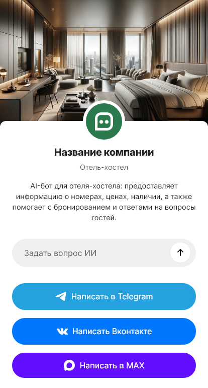 Отель-хостел объединяет два типа размещения: номера с повышенным комфортом и бюджетные койко‑места. Это привлекает разную аудиторию — туристов, командированных, студентов, группы. Вопросы у всех разные: кому-то важны условия в номере и документы, кому-то — правила в общих комнатах, душевые, безопасность, шкафчики, тишина, кухня. Если всё объяснять вручную, администраторы перегружаются, а гости не всегда понимают, что именно бронируют.