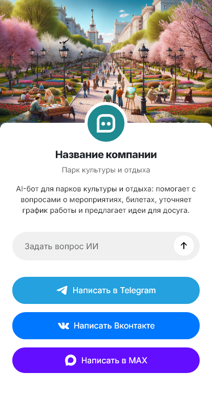 В итоге парк получает более довольных посетителей и лучше распределяет потоки. Бот работает в Telegram, VK, MAX и на сайте, помогая превратить вопросы в понятный план отдыха и повышая качество сервиса без расширения штата.