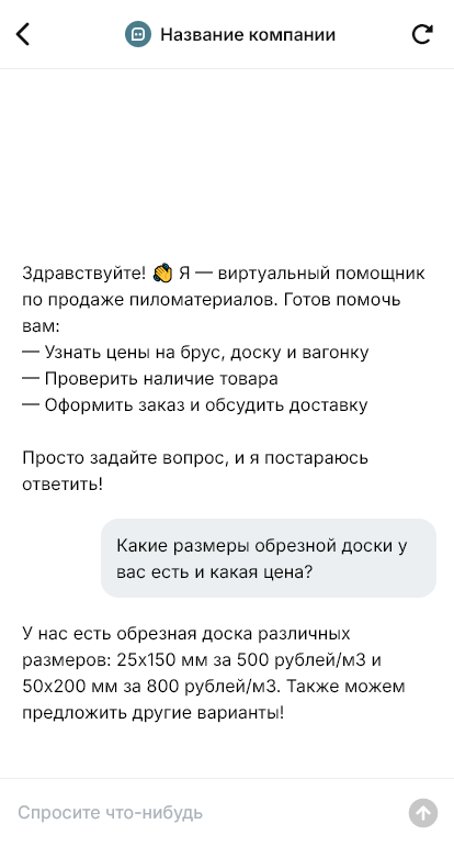 Внедрение настраивается под склад: актуальные остатки, минимальные объёмы, условия доставки, услуги обработки, интеграция с CRM/1С. Бот помогает быстро выдавать ориентиры по цене и подтверждать наличие.
